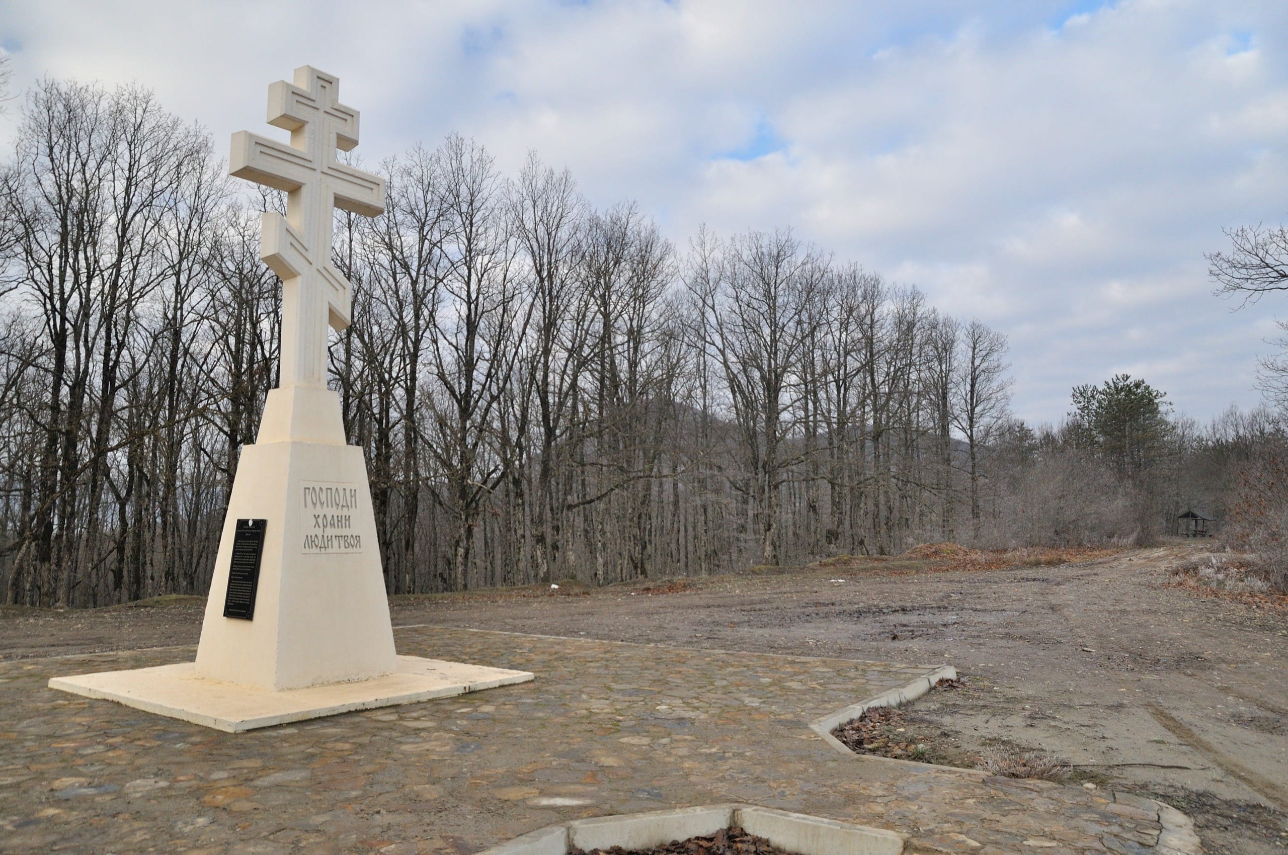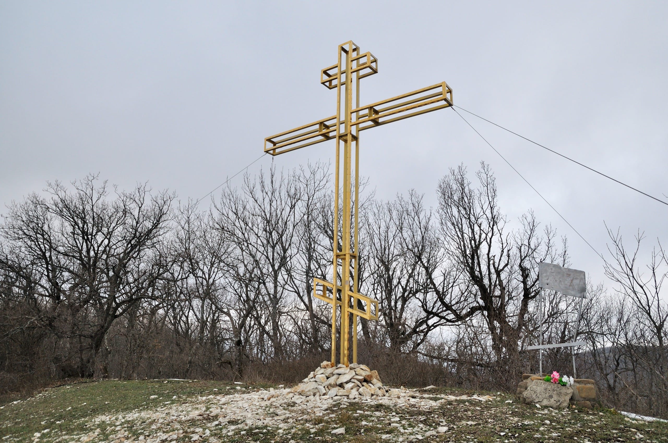 Правда, на обратном пути прошли чуть дальше и вышли к кресту в память бойцов, сложивших на горе головы в годы ВОВ. По карте через крест был сквозной проход, а на деле снова тропа оказалась виртуальной и мы зашли в тупик. Больше без троп ходить желания не было, поэтому мы вернулись ровно на тот же трек, по которому пришли на гору.