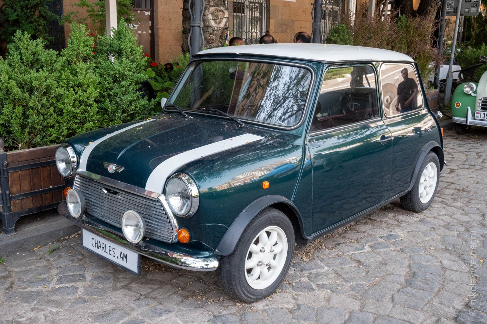Несколько раритетных авто расположились в ряд возле уличных кафе улицы Таманяна.