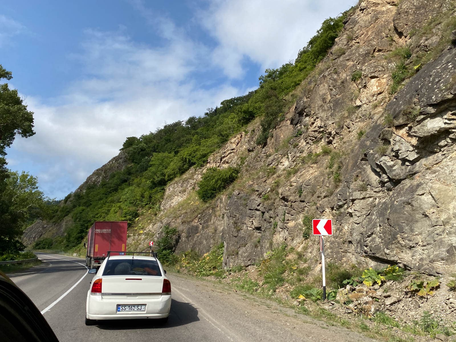 Спустя два часа и 130 километров, после Хашури, прямая как стрела магистраль закончилась и трасса превратилась в двухполосный серпантин, виляющий по долине Куры.