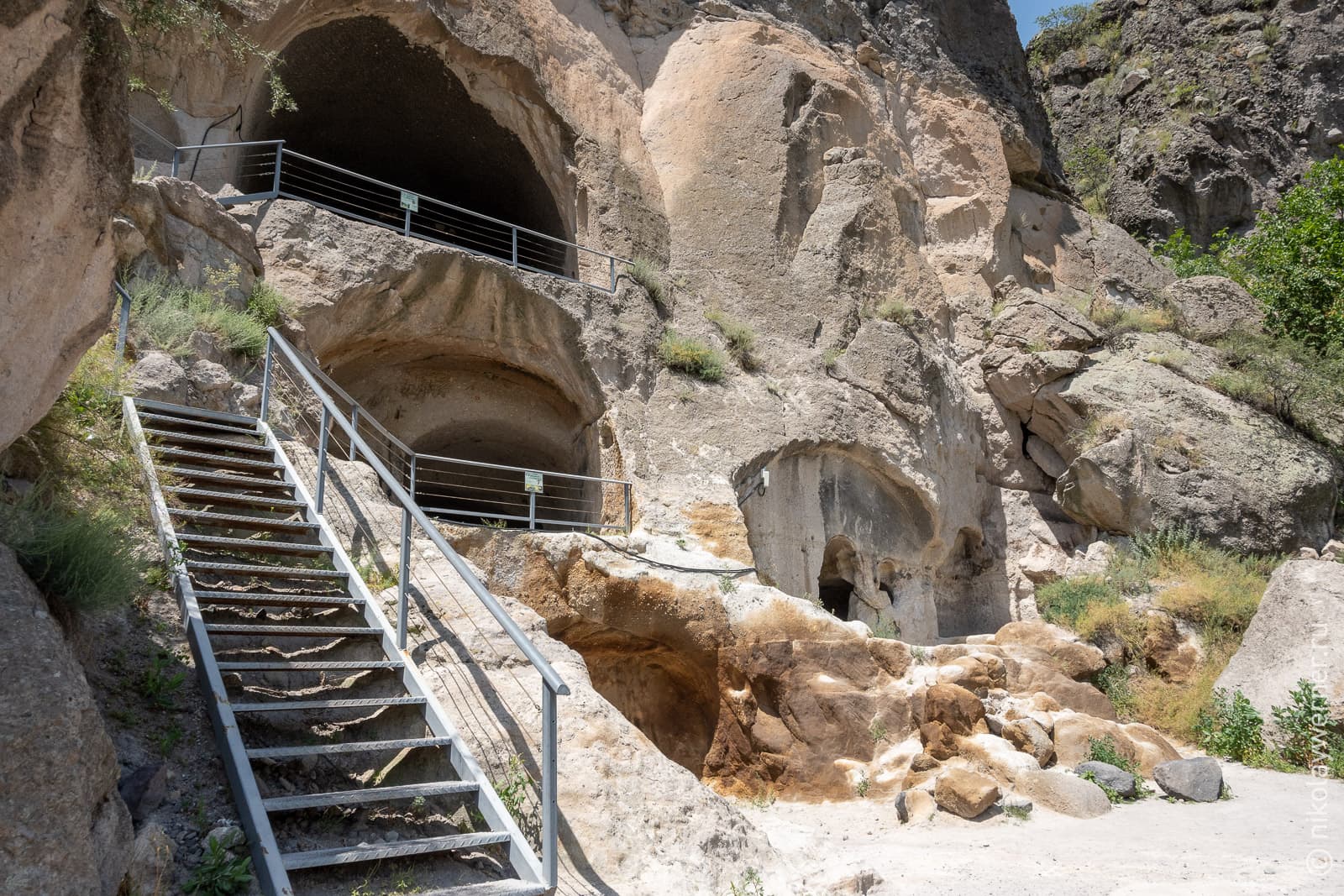Расположена колокольня в самом сердце комплекса и с её уступа открывается отличный вид на многочисленные дорожки между пещерами.
