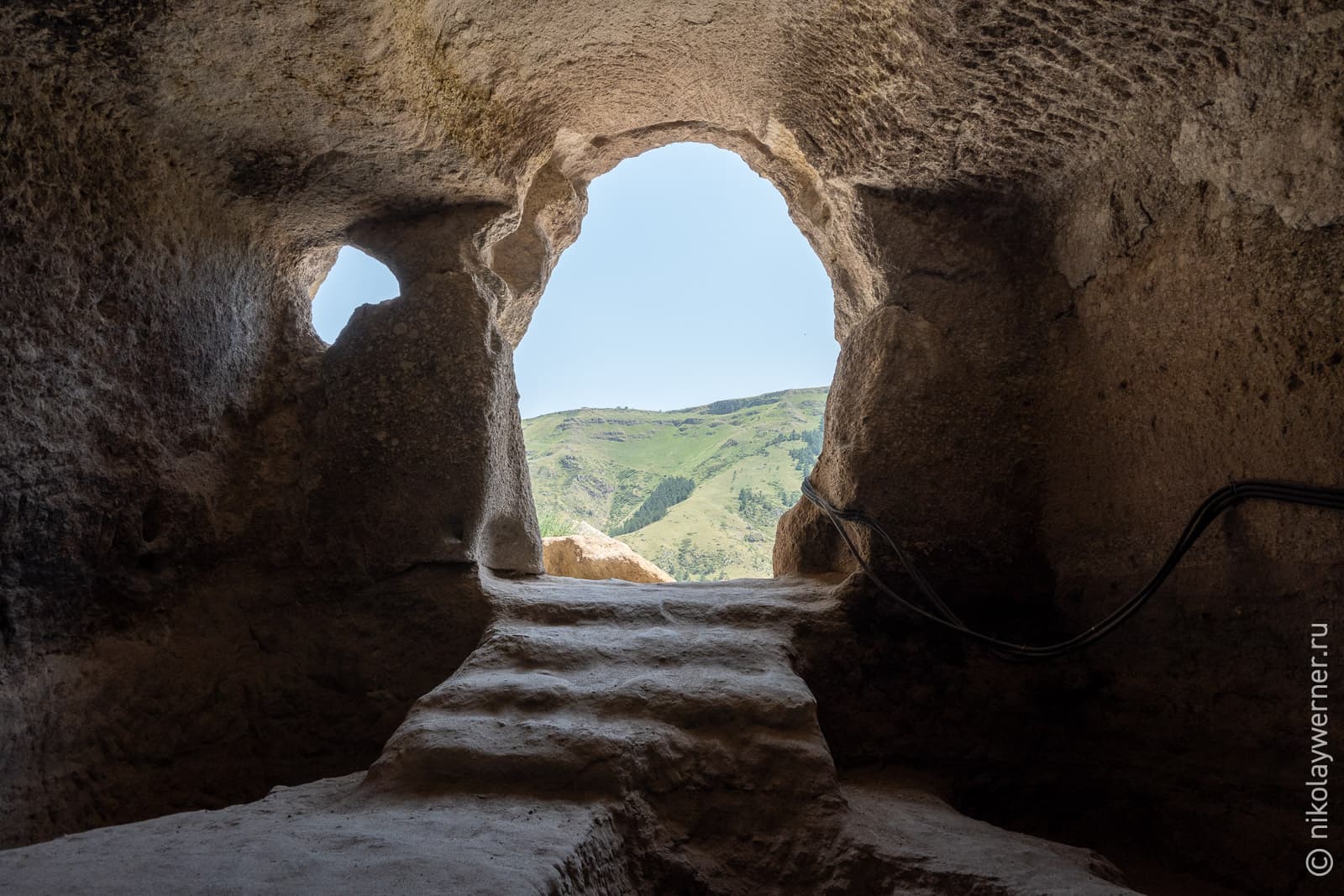 Вот так бродишь-бродишь в глубине скалы, а потом выходишь на свет, а там очередной шикарный вид на долину Куры и монастырские пещеры.
