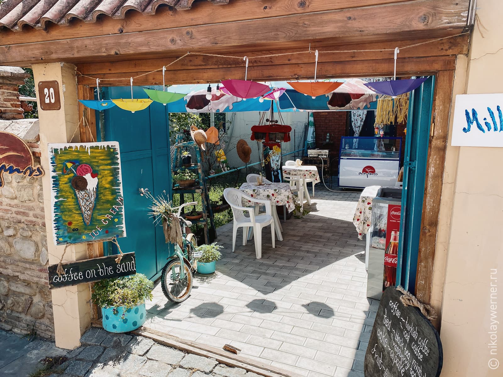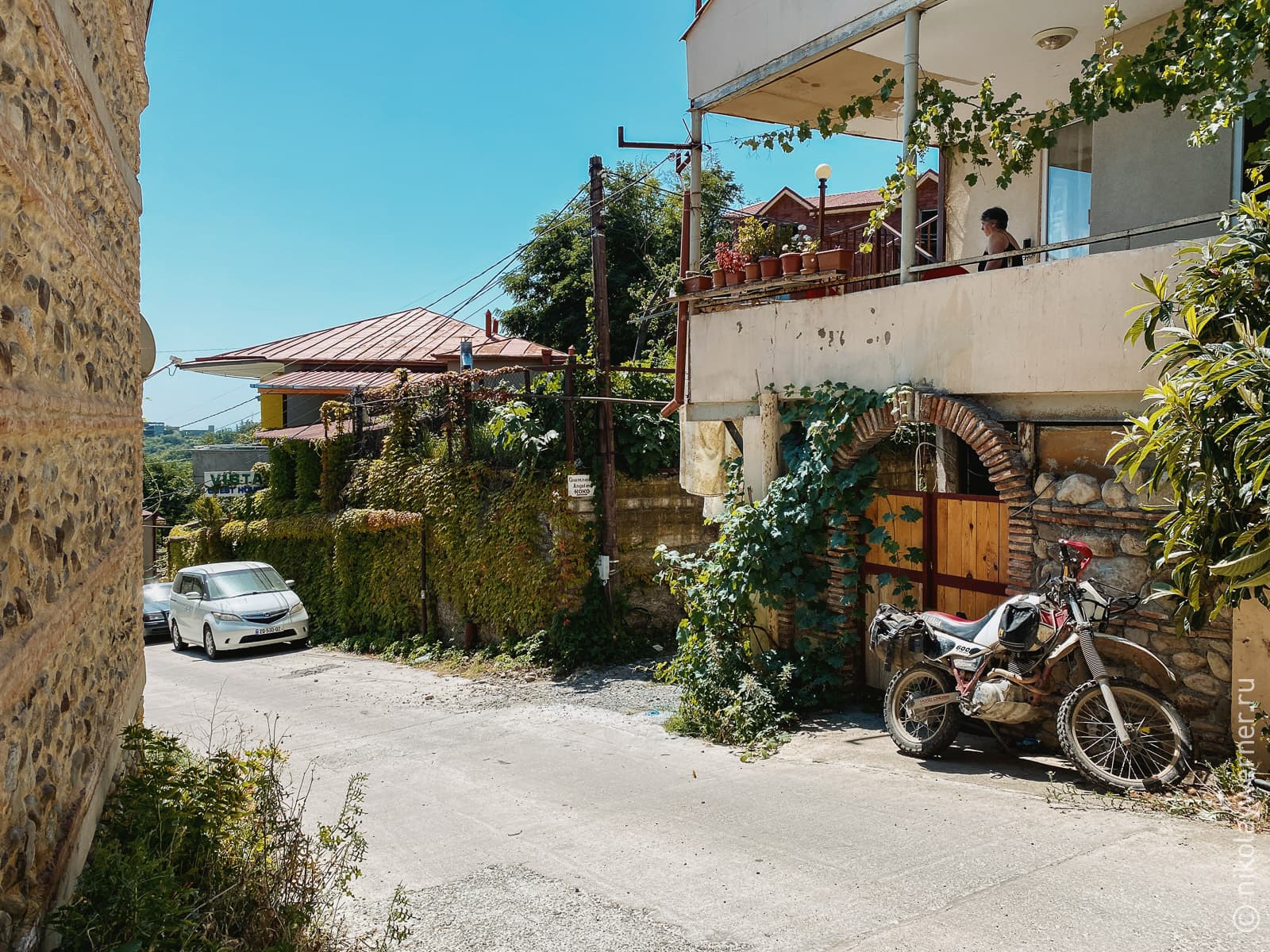 Улица, уводящая в гору, на кадре выше — та самая, по которой попали в город со стороны Бодбийского монастыря. Из окна машины я приметил сколько там всего красивого на ней, поэтому первым делом мы пошли в обратном направлении.