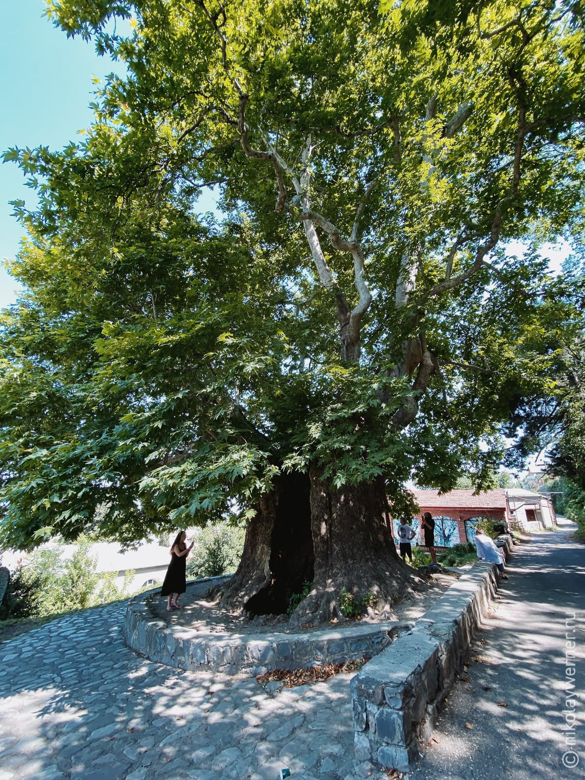 Первой точкой, куда нас привёз Александр, стал древний платан — огромное дерево, которому какое-то невероятное количество лет. За дерево я рад, но точка для галочки. Можно заглянуть если едешь мимо, специально делать крюк точно не стоит.