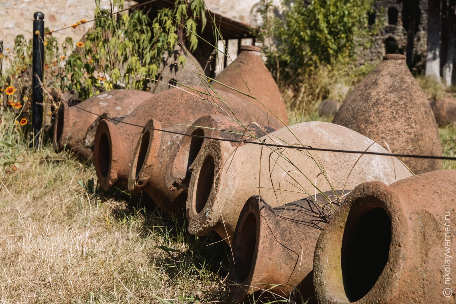 Территория монастыря усыпана многочисленными квеври — традиционными грузинскими сосудами для производства и хранения вина.