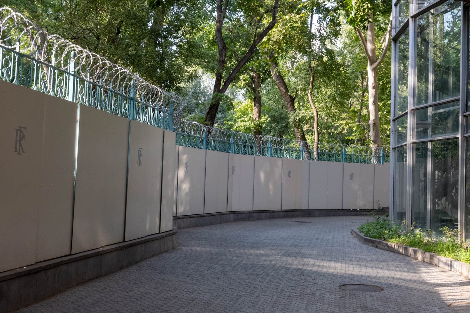 Оттуда пошёл в Английский парк мимо щедро оплетённой колючей проволокой ограды французского посольства.