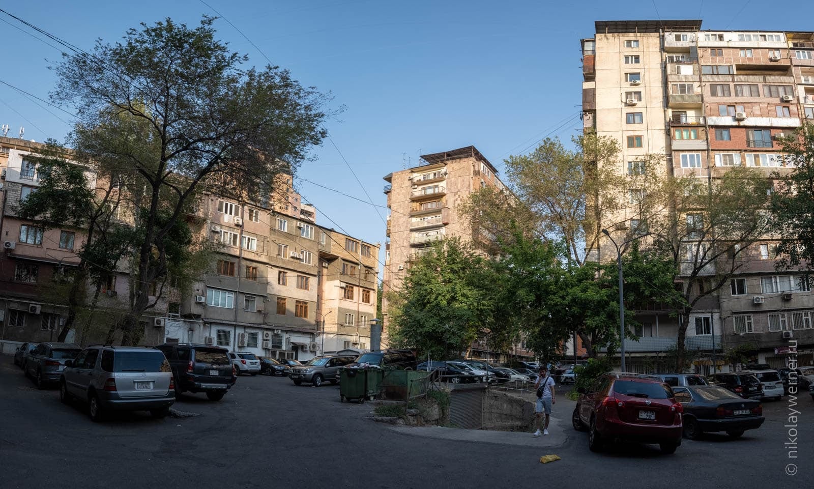 А вот просто типичный двор многоэтажной застройки центра Еревана.