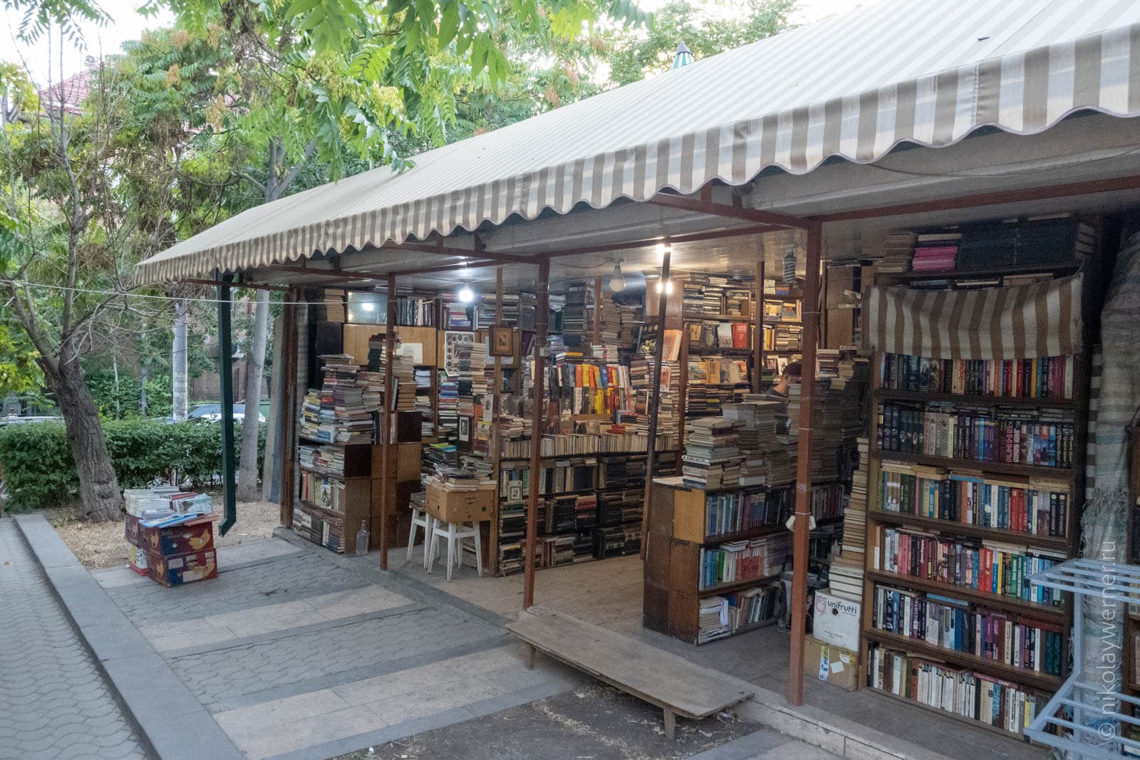 Рядом с которым стоял развал с книгами по каким-то смешным ценам: 100–300 драм ($0,25–0,75).