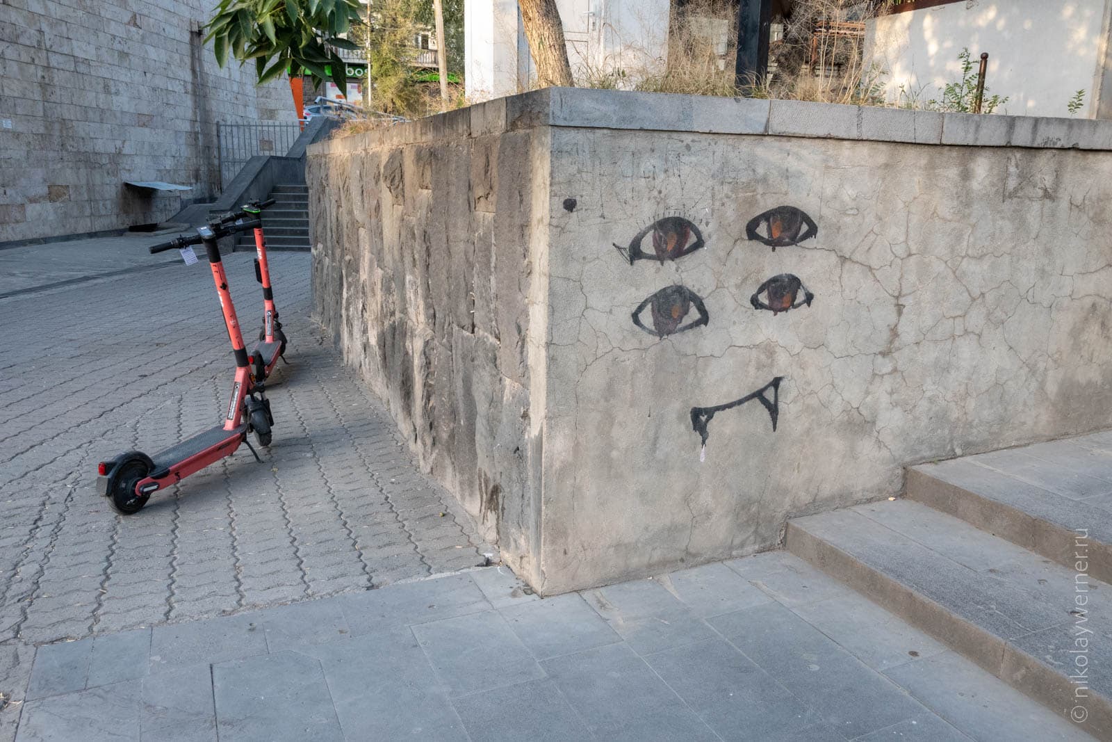 За фонтаном, на выходе из парка, я нашёл немного стрит-арта.