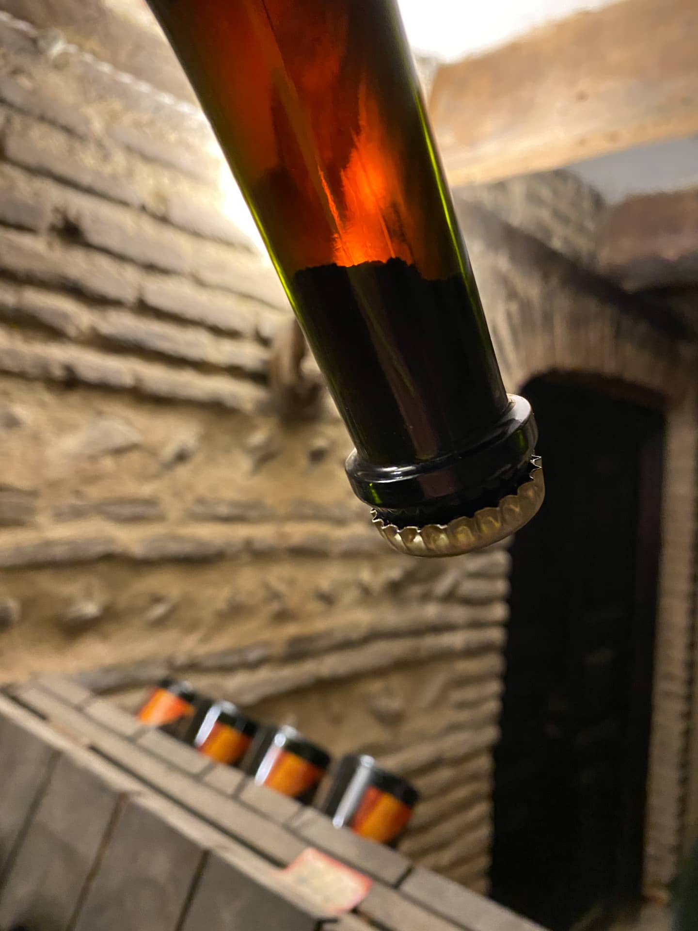 Насколько я помню, нам рассказали что они вниз горлышком все стоят, чтобы там естественным образом пробка образовалась из осадка. Но могу что-то путать — давно дело было.