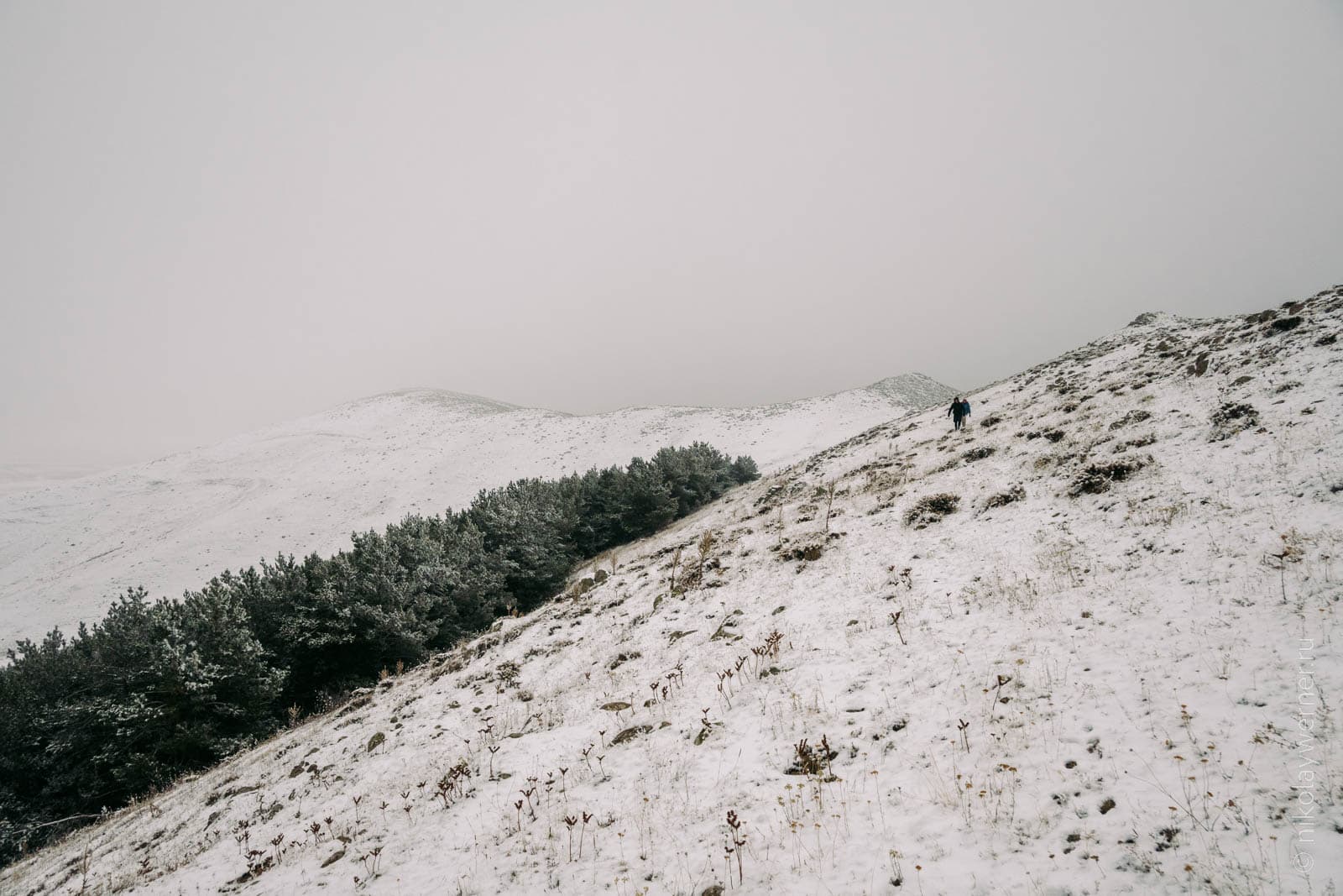 Ширакский хребет. Заснеженные и туманные окрестности Покрашенского перевала