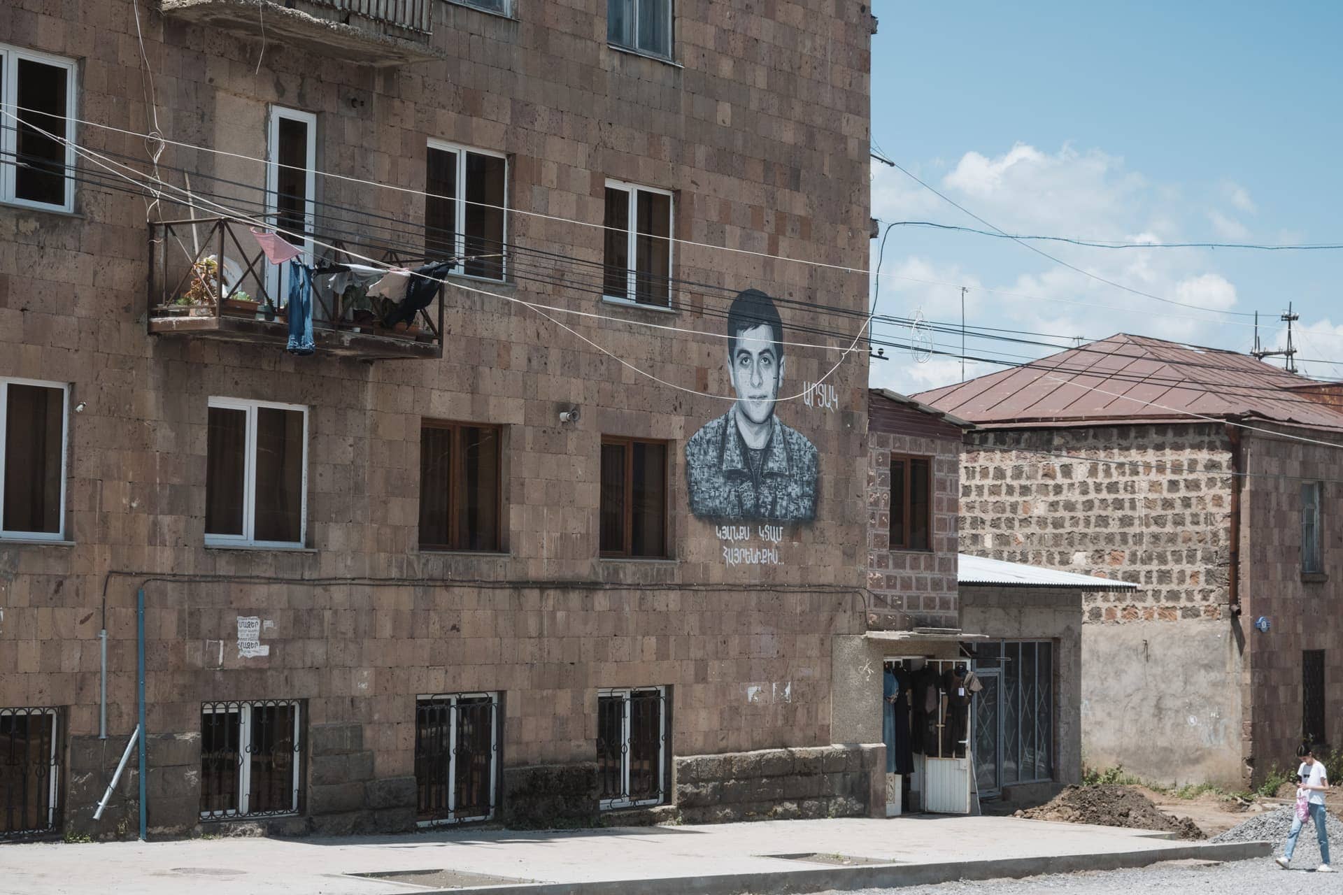 В Армении распространена практика увековечивать лица погибших ребят на стенах домов, в которых они жили.