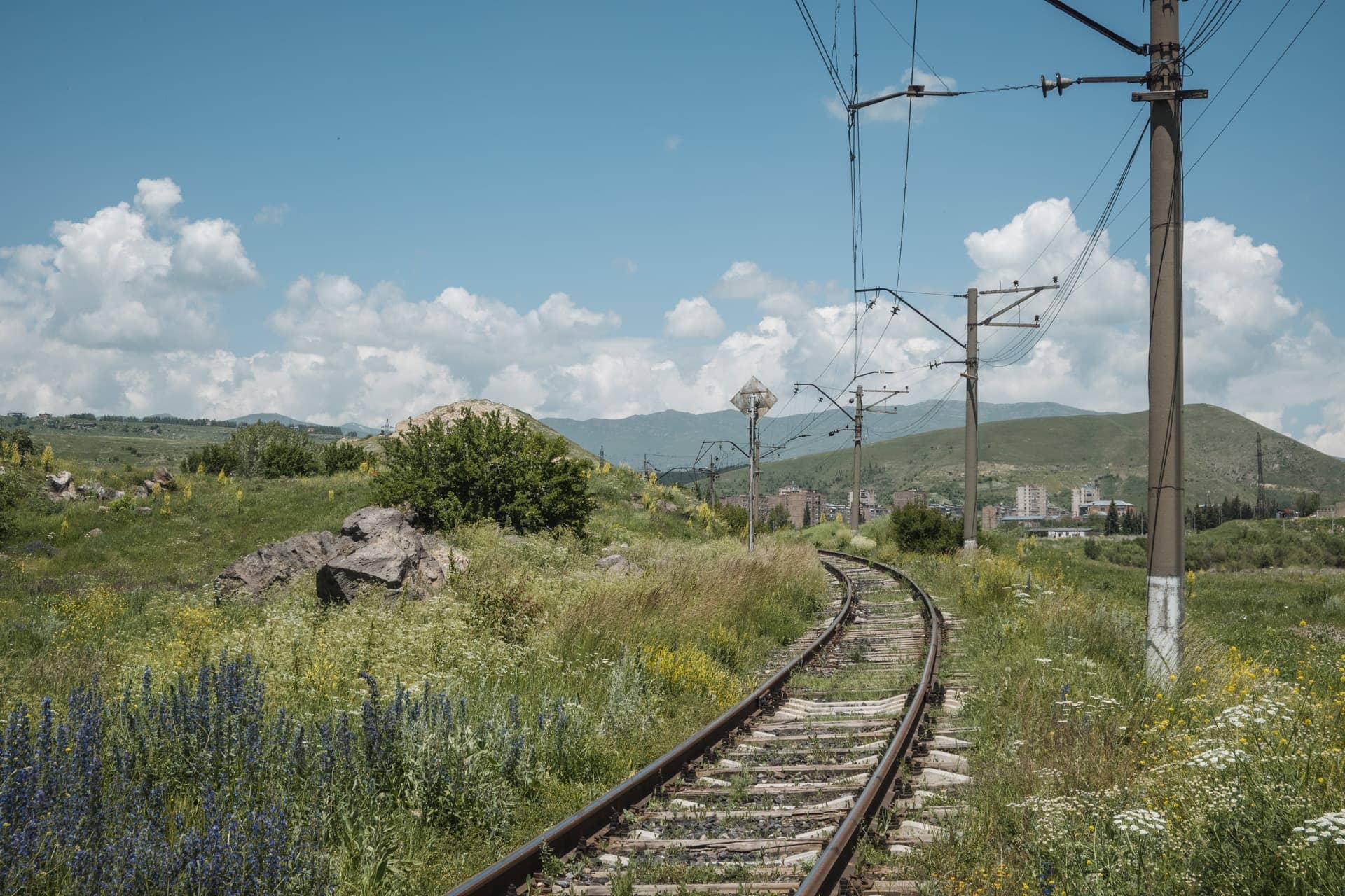 Пересёк железную дорогу, она действует: в летние месяцы на Севан ходит электричка.