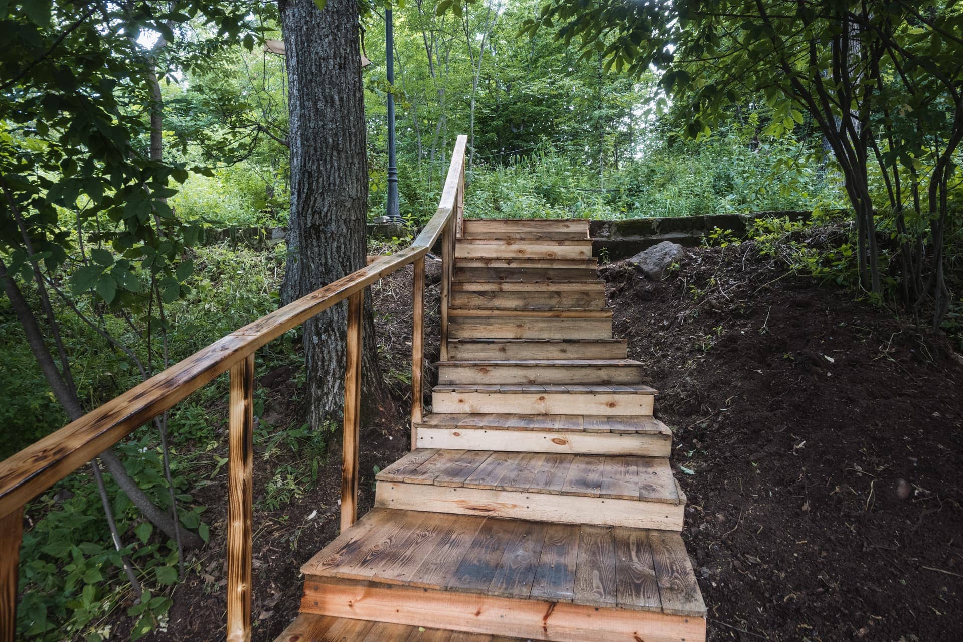 Склоны той горы круты и чтобы уклон парковой тропинки не был велик, размах волн сделали большим: до ста восьмидесяти метров от поворота до поворота! По карте двести метров, набор высоты шестьдесят, а длина терренкура при этом — полтора километра!