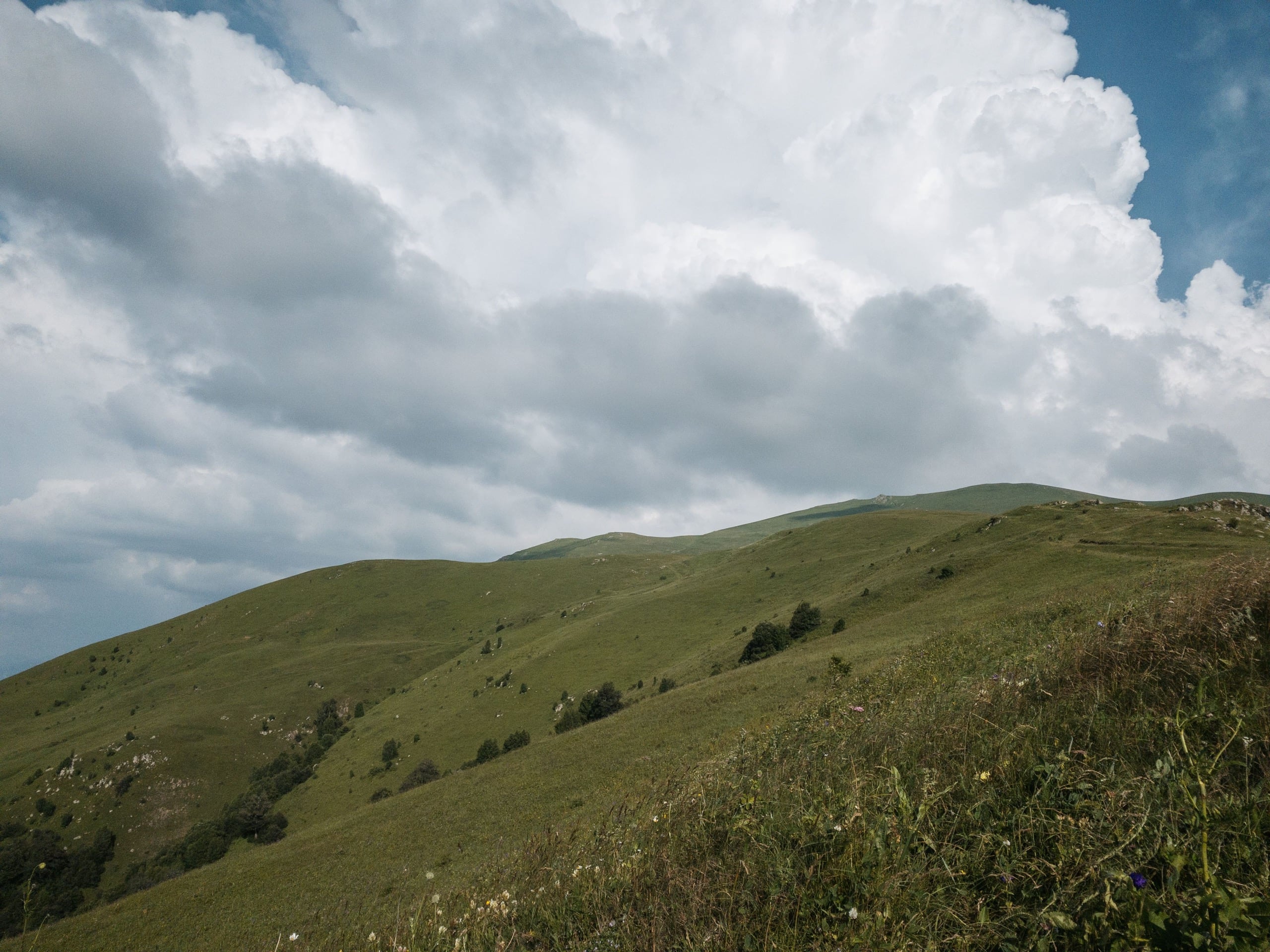 Надо сказать, что выросшая у озера туча была не единственной. Следующая взгромоздилась над горой Димац. На западной стороне грозовых туч не было, но прочих облаков тоже хватало.