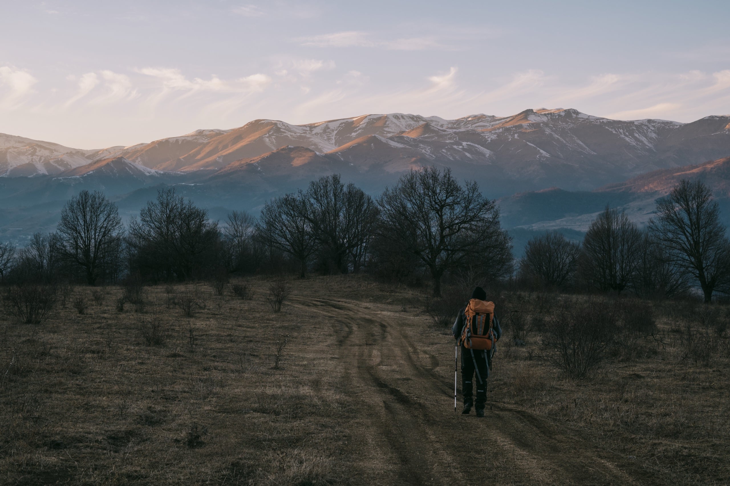 Пожалуй, это была лучшая часть пути. Вокруг прекрасные панорамные виды, под ногами свободная от снега ровная, без крутых уклонов, дорога. Ветра нет, солнце пригревает, мягкий вечерний свет рисует объёмные тени и ласкает глаза. Лучше не придумаешь.