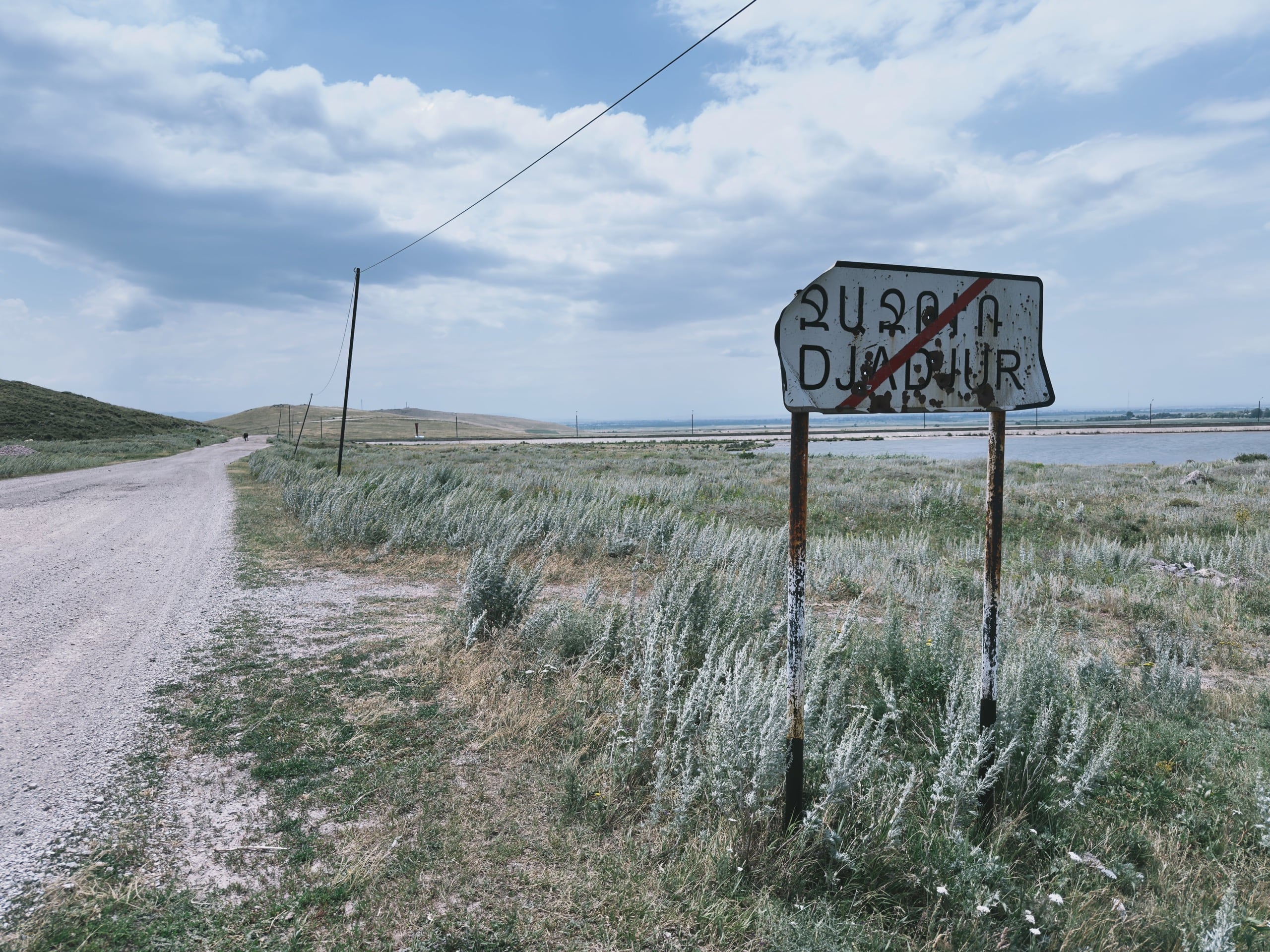 Фото 6. Въездной знак у поворот к Джаджуру, после него до музея остаются считаные сотни метров.